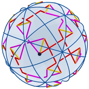 Une stellation consistant à promener le point initial dans les triangles sphériques recouvrant la sphère unité