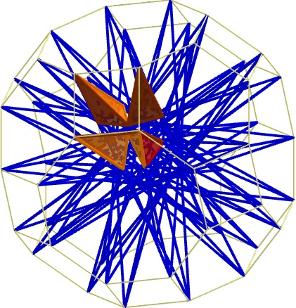 Les distances respectives entre 2 sommets de l’étoile sont dans distances dans la feuille E34. Ce sont en réalité les carrés des distances de manière à mettre en évidence les étoiles associées.