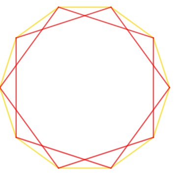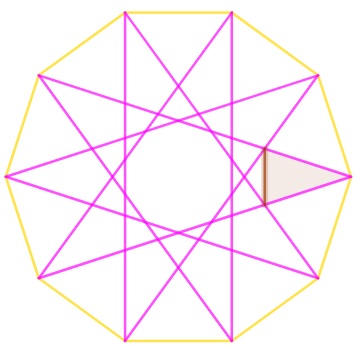 Les pointes de l’étoile sont limitées par des triangles. (c’est un choix). Le sommet est un des points de la figure d’origine et les points de base à l’intersection la plus proche avec une autre arête